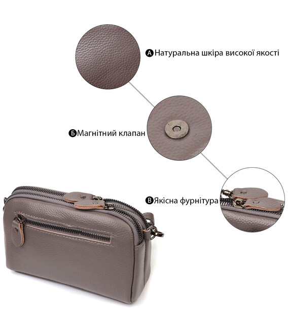 Детальніше Сумка-клатч у стильному дизайні з натуральної шкіри 22099 Vintage Сіра