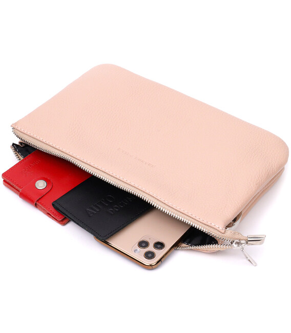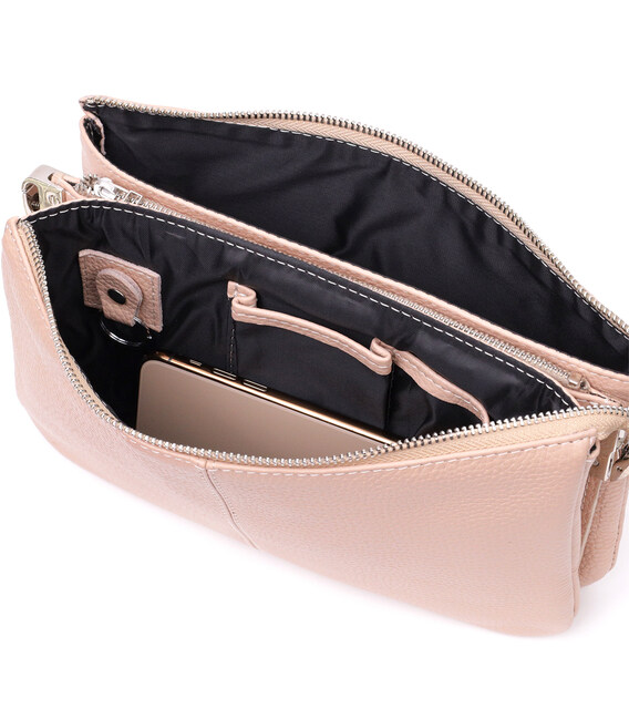 Детальніше Чарівний жіночий клатч із натуральної зернистої шкіри GRANDE PELLE 11698 Пудровий