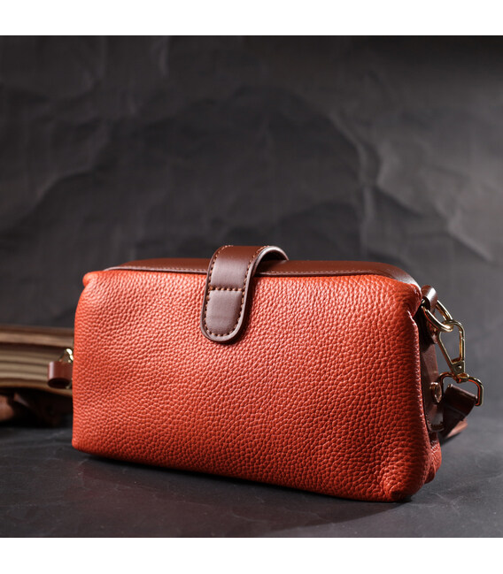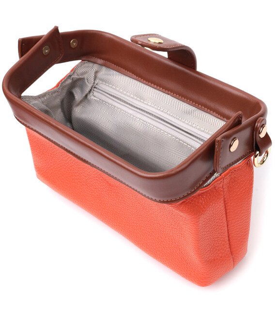 Детальніше Яскравий клатч з цікавою клямкою з натуральної шкіри Vintage 22424 Оранжевий