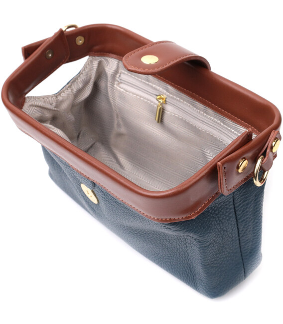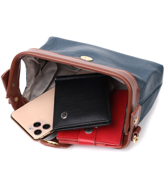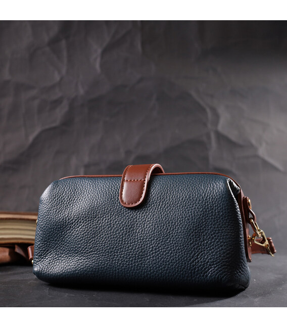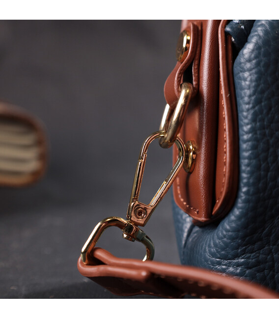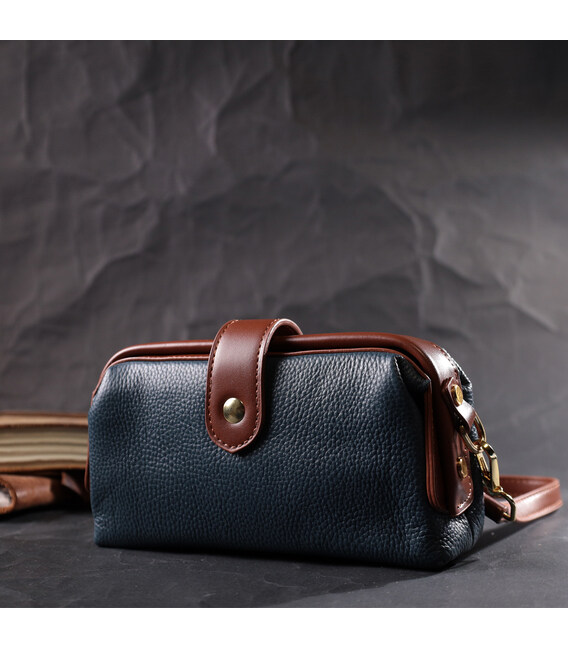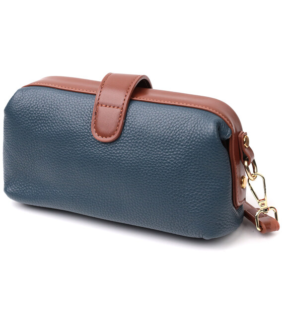 Детальніше Оригінальний шкіряний клатч у модному кольорі з цікавою клямкою Vintage 22428 Синій