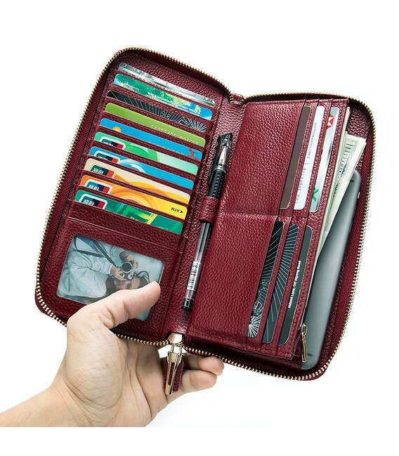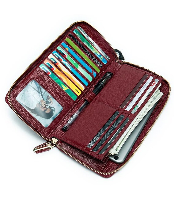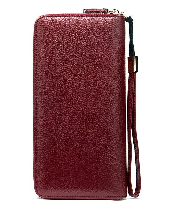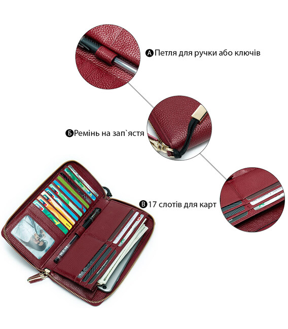 Яскравий шкіряний жіночий клатч з натуральної шкіри флотар. Шкіра такого типу відрізняється своєю зносостійкістю. На ній менш помітні подряпини і потертості. Модель підійде для дівчат, які люблять яскраві і місткі аксесуари і є шанувальниками червоного кольору. Клатч доповнено всім найнеобхіднішим для повсякденного життя. Модель ідеально поєднує в собі функції гаманця і візитниці. Міцна шкіра і якісна фурнітура збільшать термін служби вашого аксесуара. Клатч зручно сидить в руці. При бажанні ви можете носити його і на зап'ясті. У комплекті йде пилозахисний чохол.