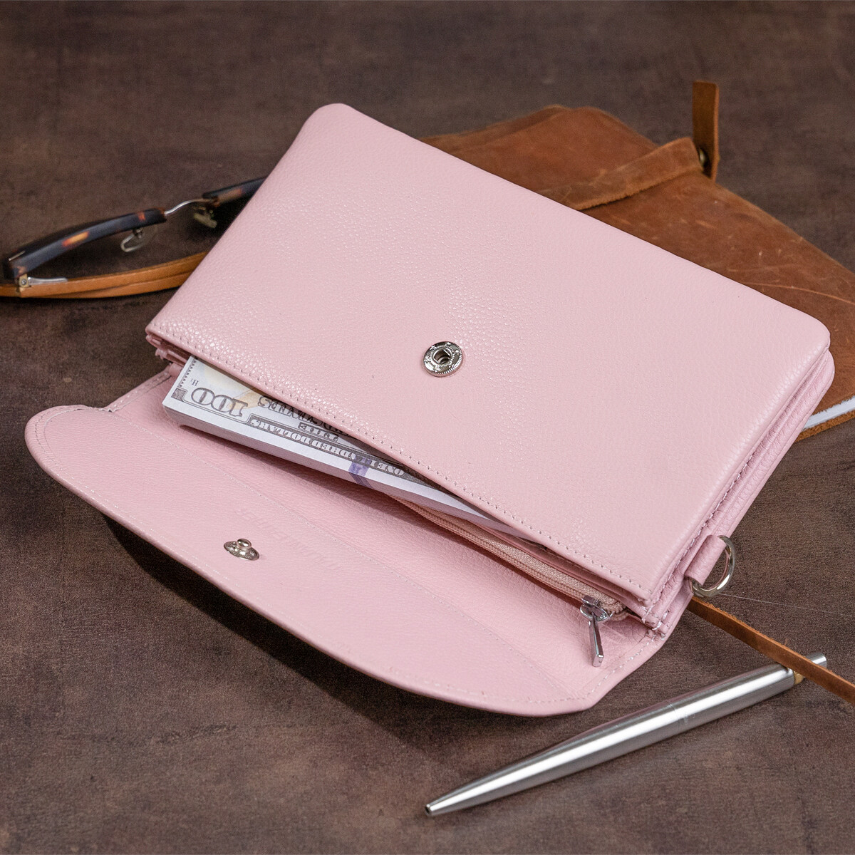 Стильний клатч по всім сучасним тенденціям ніжного рожевого кольору. Аксесуар володіє надзвичайно красивою природною фактурою шкіри. Ніжно-рожевий колір додасть вашому образу легкості і оригінальності. Клатч має легко виражений запах шкіри. Фурнітура надійна. Всередині достатньо місця для зручного розташування паперових купюр, банківських, дисконтних карт, візиток, документів, мобільного телефону і особистих речей адже відділення просторі і виконані з текстилю. З таким клатчем буде зручно піти на вечірку. Аксесуар з легкістю замінить вам вечірню сумочку. Клатч упакований в фірмову коробку від виробника. У нашому інтернет-магазині ви знайдете якісні аксесуари за доступними цінами.