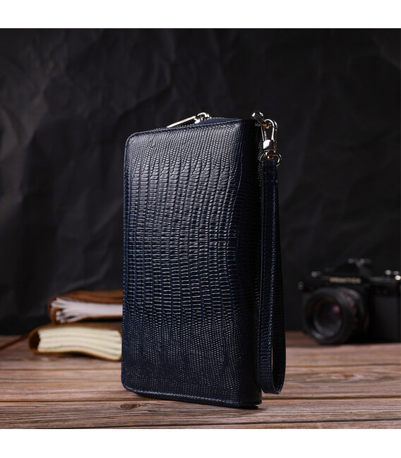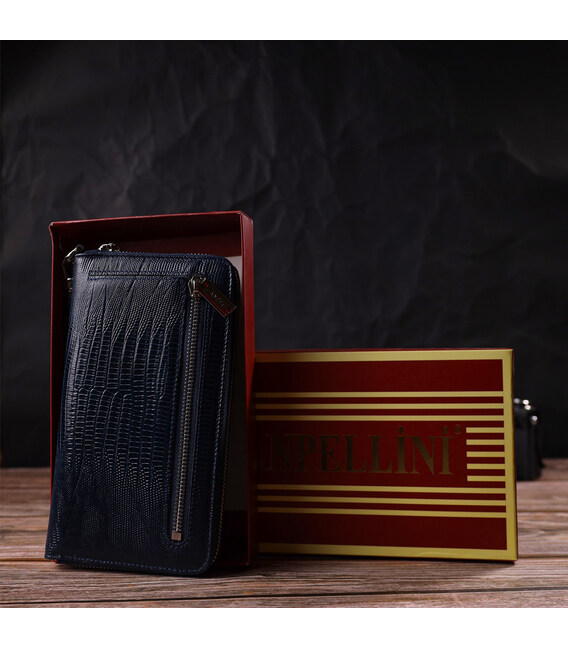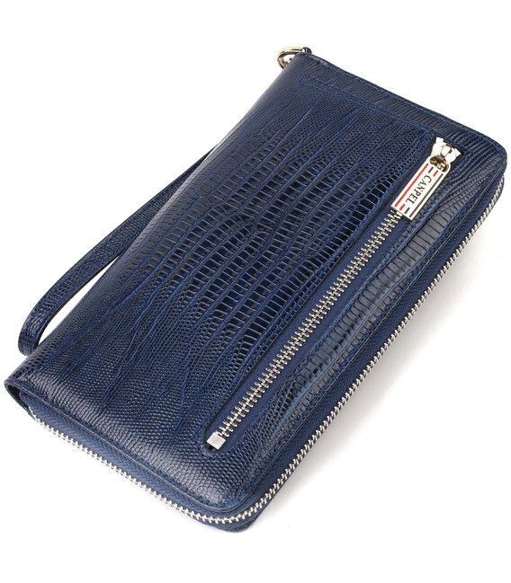 Місткий клатч для жінок із натуральної шкіри з тисненням CANPELLINI 21919 Синій
