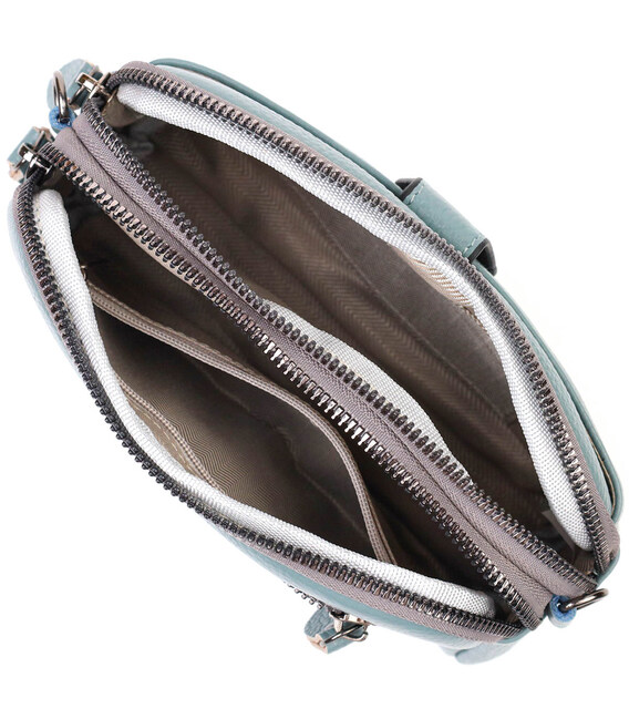 Модна невелика сумка-клатч із натуральної м'якої шкіри високої якості. Виріб дуже зручний, можна носити на плечі, через плече, під рукою та на кисті. Модель доповнена фурнітурою кольору темного срібла. Аксесуар має два основні відділення на блискавках, в яких дві кишеньки - на блискавці та один відкритого типу, також зовні знаходяться дві кишені. У комплекті до сумки йде знімний плечовий ремінь та знімний кистьовий ремінь сірого кольору - це елегантне та стильне рішення. Сірий колір підкреслює сучасність дизайну та гармоніює з основним тоном сумки, створюючи модний контраст. Модель закривається на блискавку.