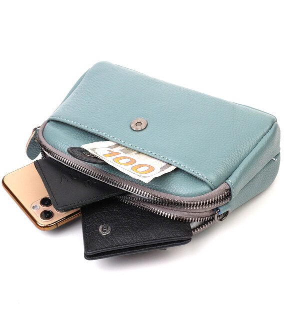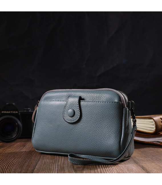 Детальніше Модна сумка-клатч у стильному дизайні з натуральної шкіри 22087 Vintage Сіро-блакитна