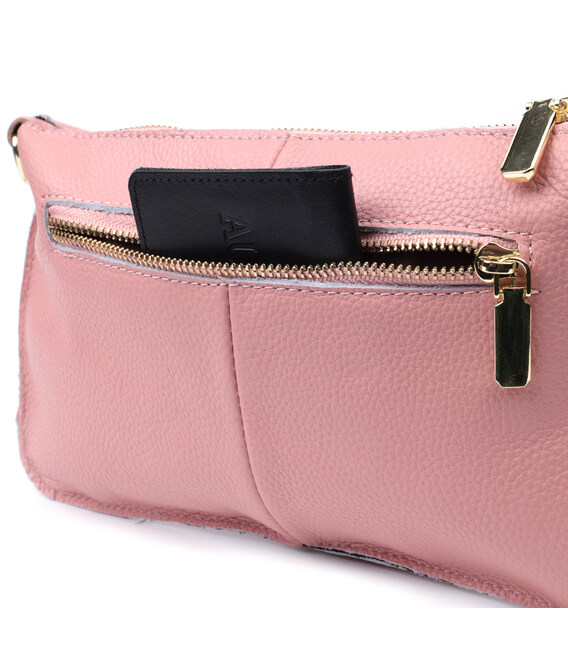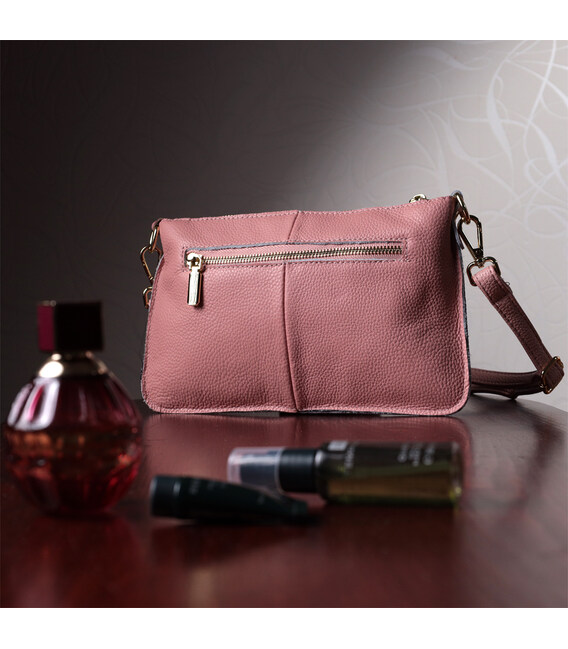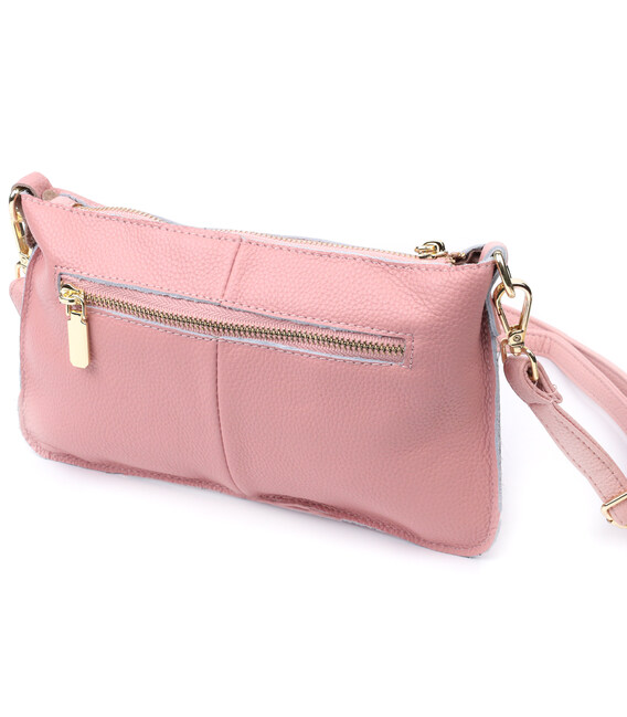Красива жіноча сумка-клатч з двома ременями з натуральної шкіри Vintage 22644 Рожева