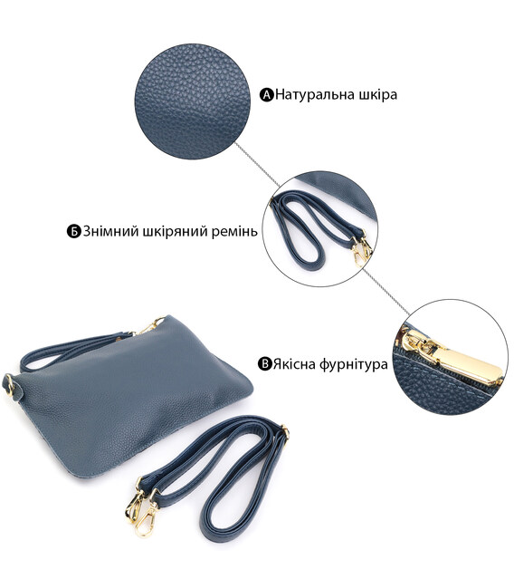 Детальніше Трендова жіноча сумка-клатч із двома ременями з натуральної шкіри Vintage 22646 Синя