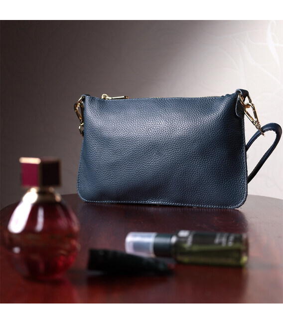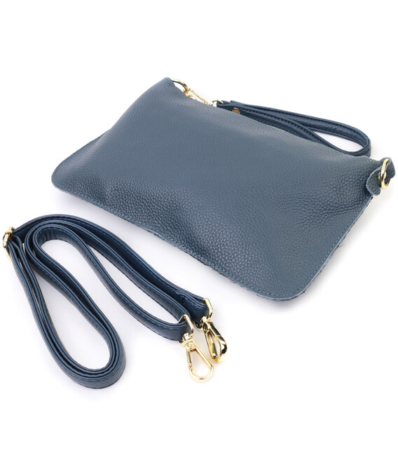 Трендова жіноча сумка-клатч із двома ременями з натуральної шкіри Vintage 22646 Синя