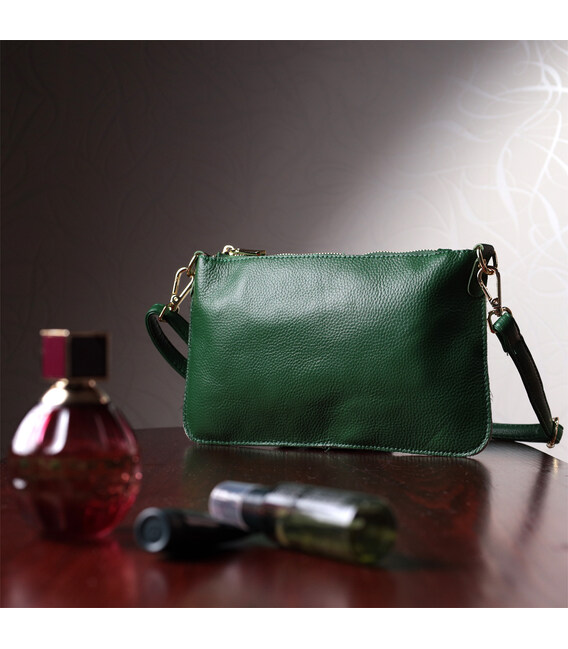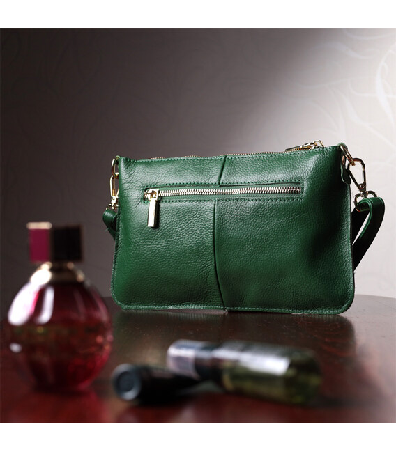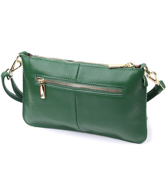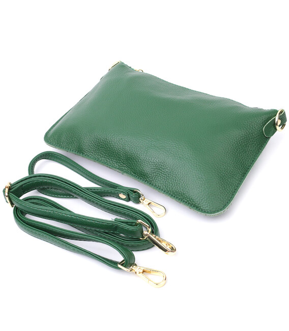 Оригінальна жіноча сумка-клатч із двома ременями з натуральної шкіри Vintage 22647 Зелена
