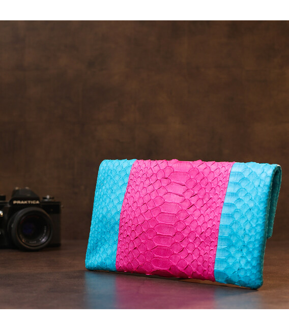 Чарівний клатч для не менш яскравих представниць жіночої статі. Виконаний аксесуар з натуральної екзотичної шкіри змії, що відрізняється високою зносостійкістю. Фактура дуже приємна на дотик. З таким аксесуаром Ви точно не залишитеся непоміченою.