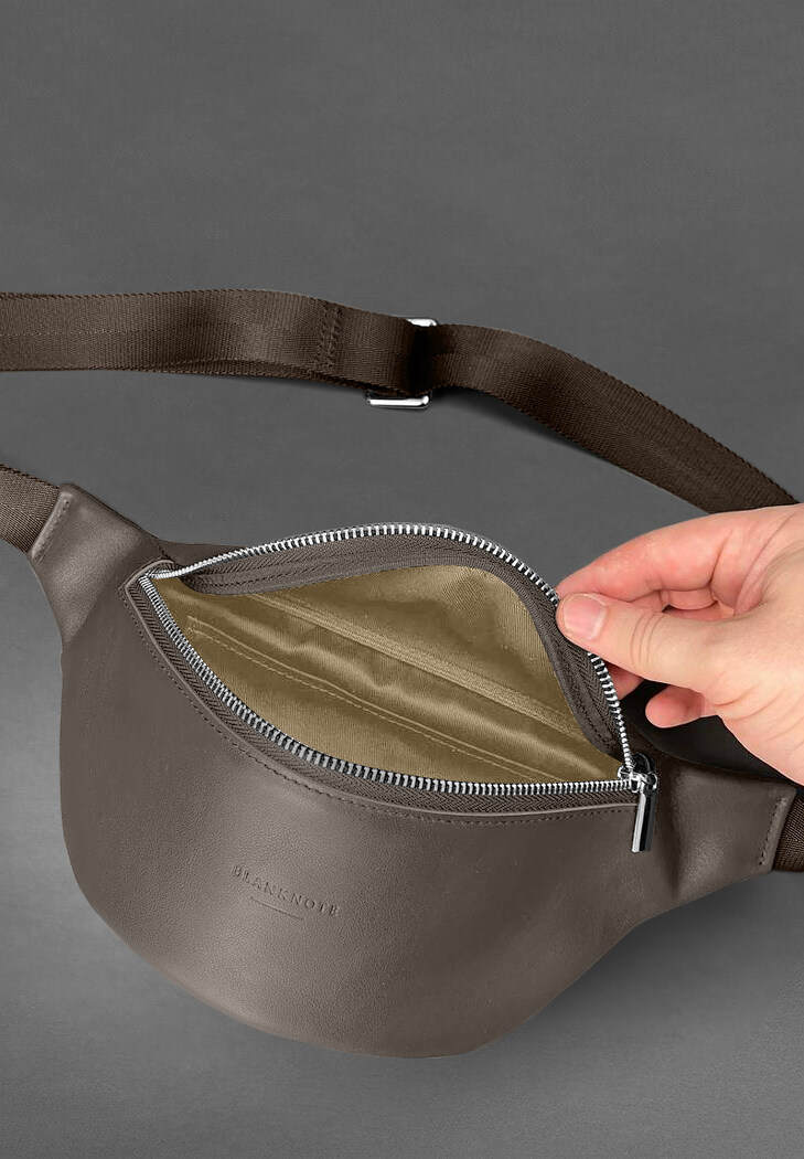 Шкіряна поясна сумка-бананка Kanny темно-бежева картинка, зображення, фото