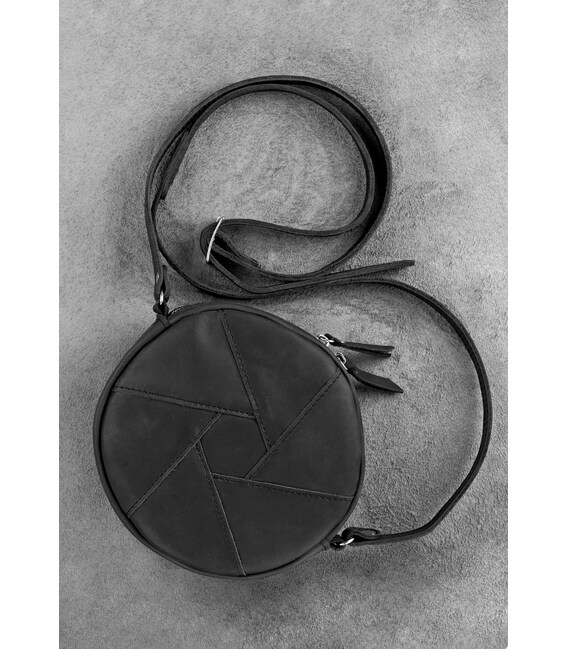 Кругла сумка Бон-бон яскравий представник нашої лінійки «Вінтаж». Для створення аксесуарів з цієї колекції, майстри використовували шкіру, на якій присутні потертості, подряпини та інші сліди часу. Це надає сумці особливий шик і елегантність. Створюється відчуття, що це «річ з історією», раритетна, вінтажна, що володіє особливою красою.