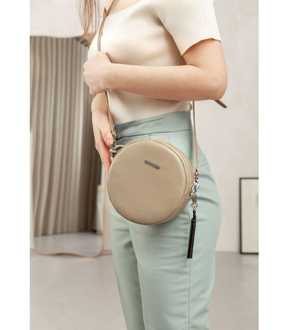 Кругла жіноча шкіряна сумочка Tablet світло-бежева