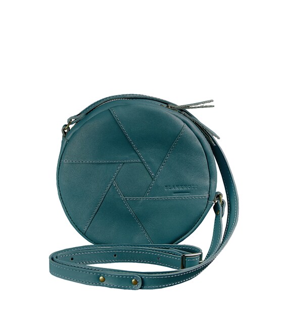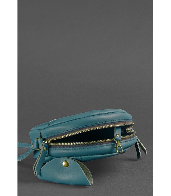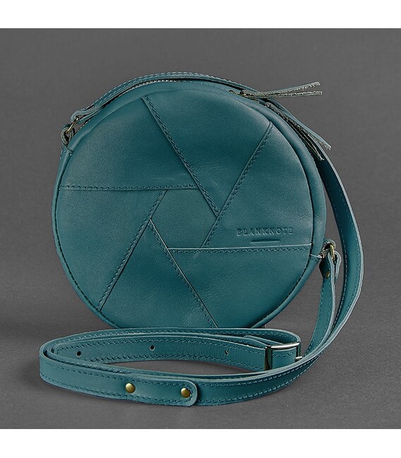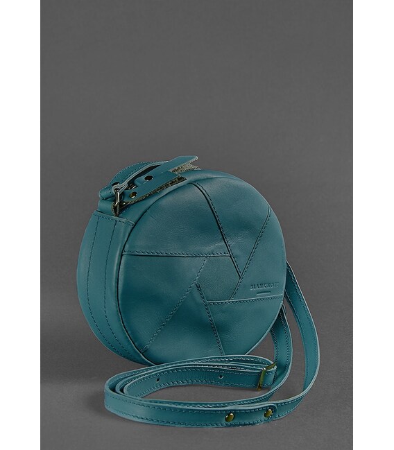 Чарівна бірюзова сумочка круглої форми сподобається любителькам стильних і оригінальних речей.