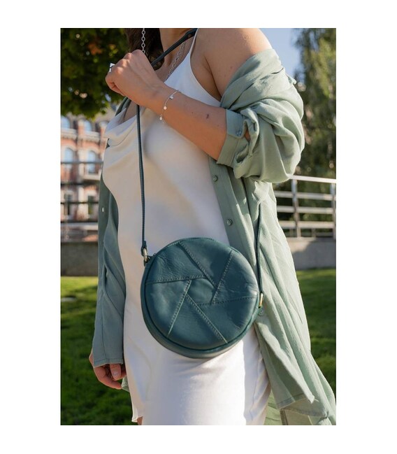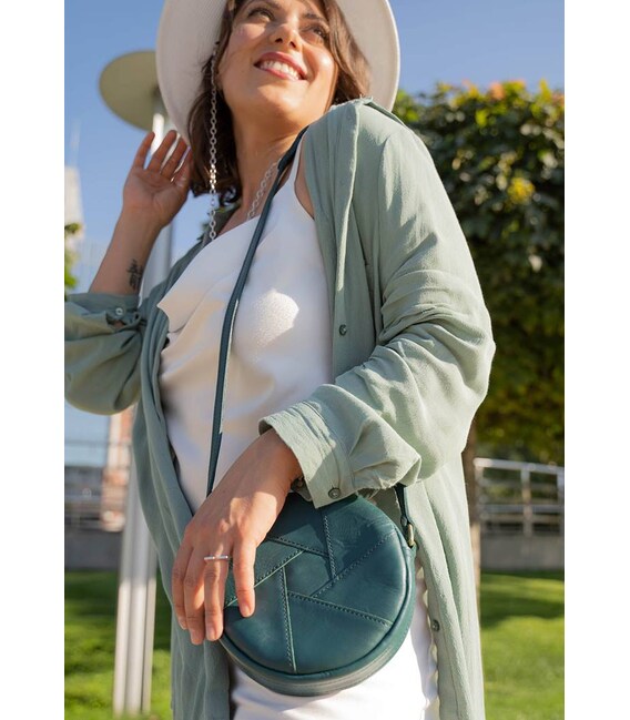 Шкіряна кругла жіноча сумка Бон-Бон зелена
