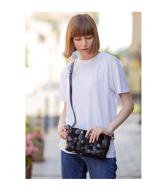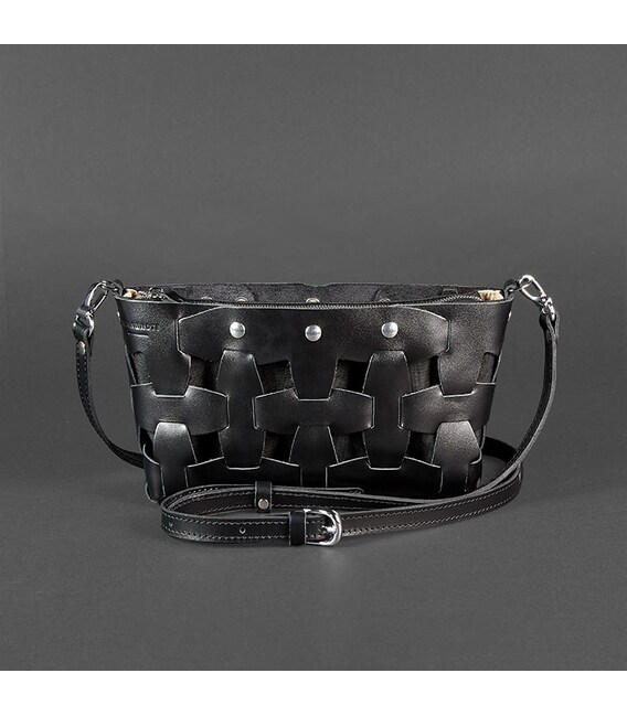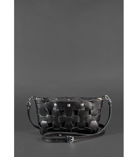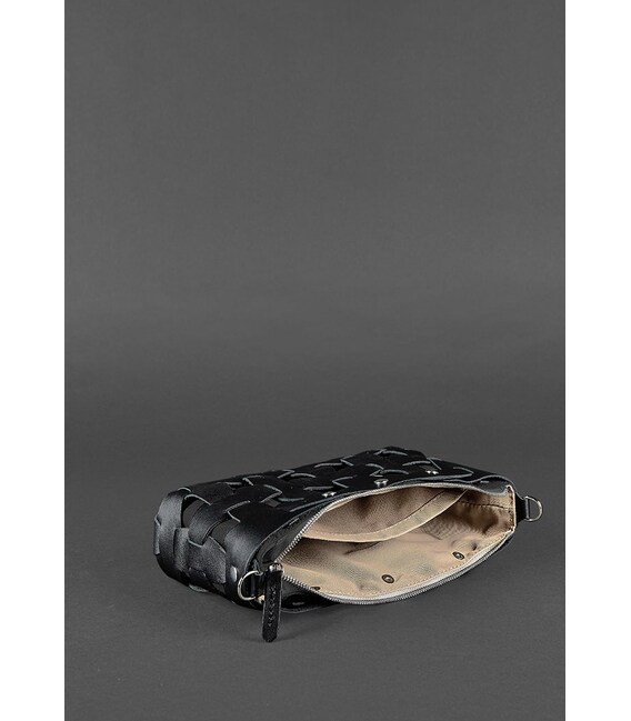 Детальніше Шкіряна плетена жіноча сумка Пазл S вугільно-чорна