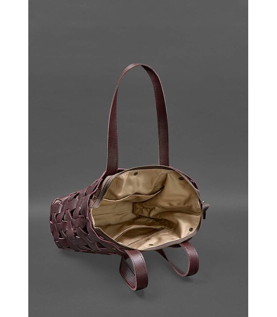 Детальніше Шкіряна плетена жіноча сумка Пазл L бордова краст