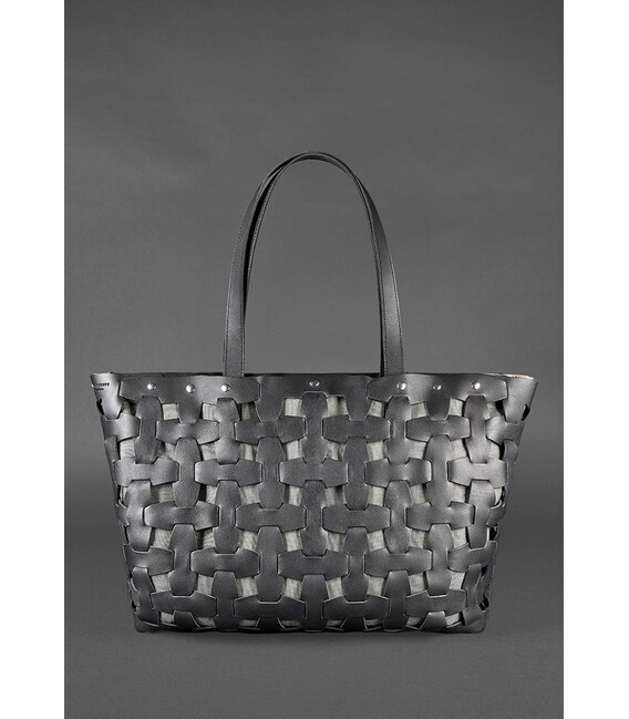 Детальніше Шкіряна плетена жіноча сумка Пазл Xl чорна Krast