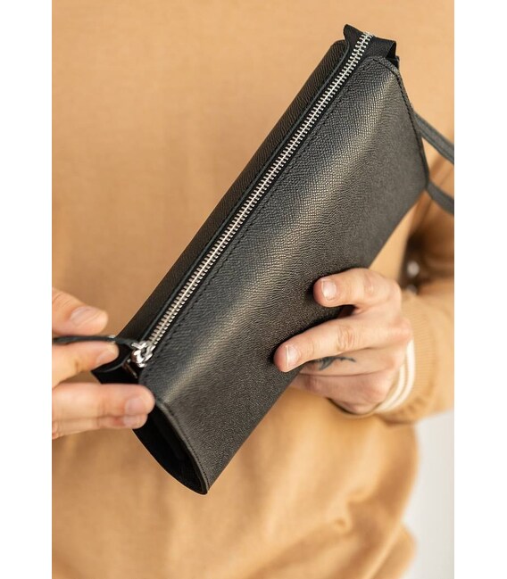 Всередині: - велике відділення, розділене перегородкою - кишеня на блискавці - 4 відділення для карток