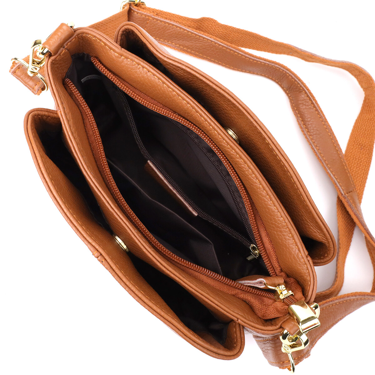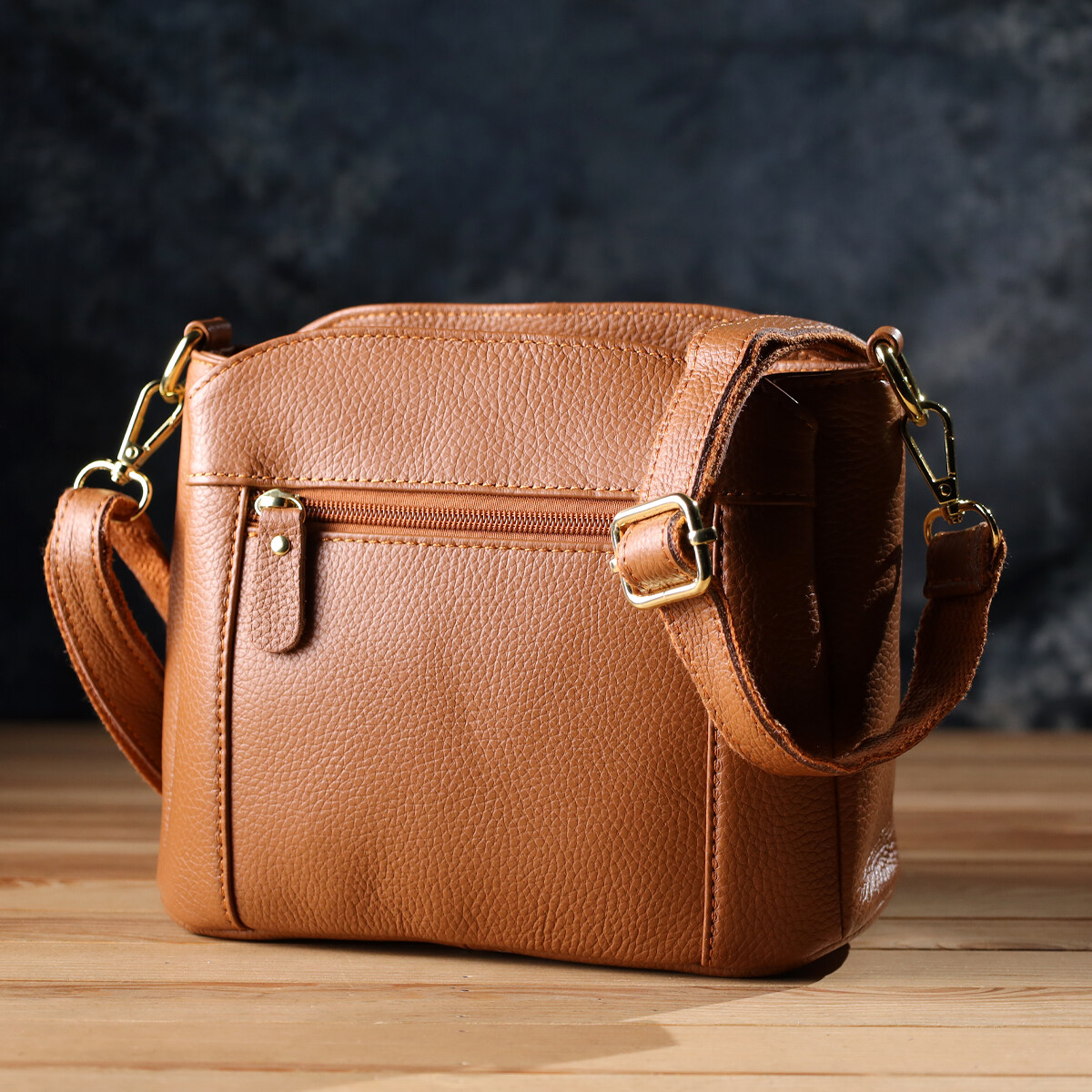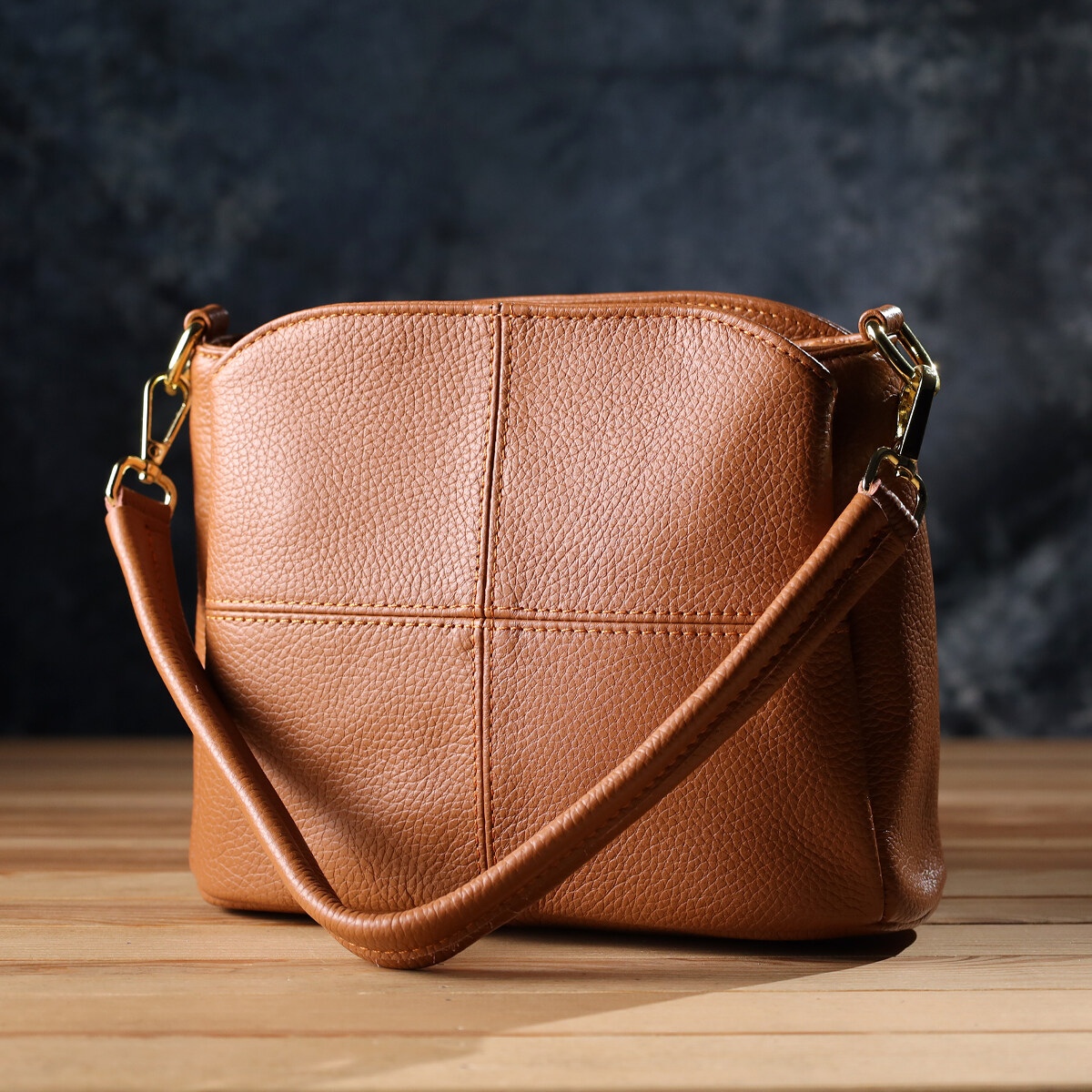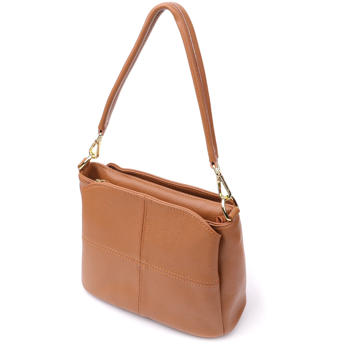 Стильна жіноча сумка на кожен день, виготовлена з натуральної шкіри флотар. Модель відрізняється оригінальною формою та сучасним дизайном, який підкреслить ваш стиль у будь-якій ситуації. Продуманий внутрішній простір та кілька зручних кишень дозволяють акуратно розмістити всі необхідні речі: телефон, гаманець, ключі та інші дрібниці. Сумка ідеально підійде як для роботи, так і для вечірніх заходів. Натуральна шкіра високої якості стійка до зношування і не вимагає складного догляду, а значить, виріб прослужить вам довго, зберігаючи свій привабливий вигляд. Ця модель стане чудовим подарунком для дівчини чи жінки, яка цінує практичність, комфорт та елегантність.