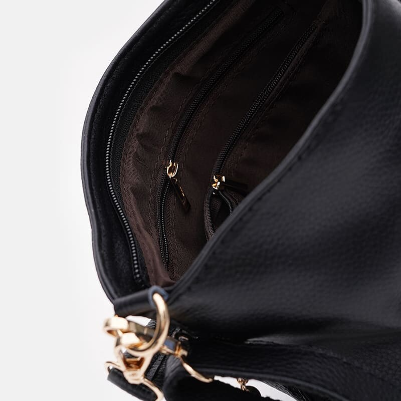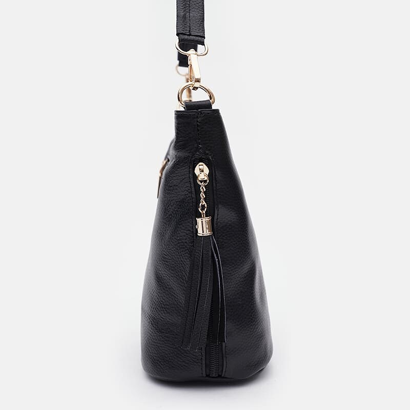 Жіноча сумка виготовлена з натуральної шкіри. Має 2 відділення та 2 кишені всередині для телефону та дрібниць. З тильного боку сумки-1 кишеня, з боків 2 кишені на блискавках. Підкладка – текстиль. У комплекті: знімний плечовий ремінь із шкіра/текстиль, шкіряна ручка, що знімається.