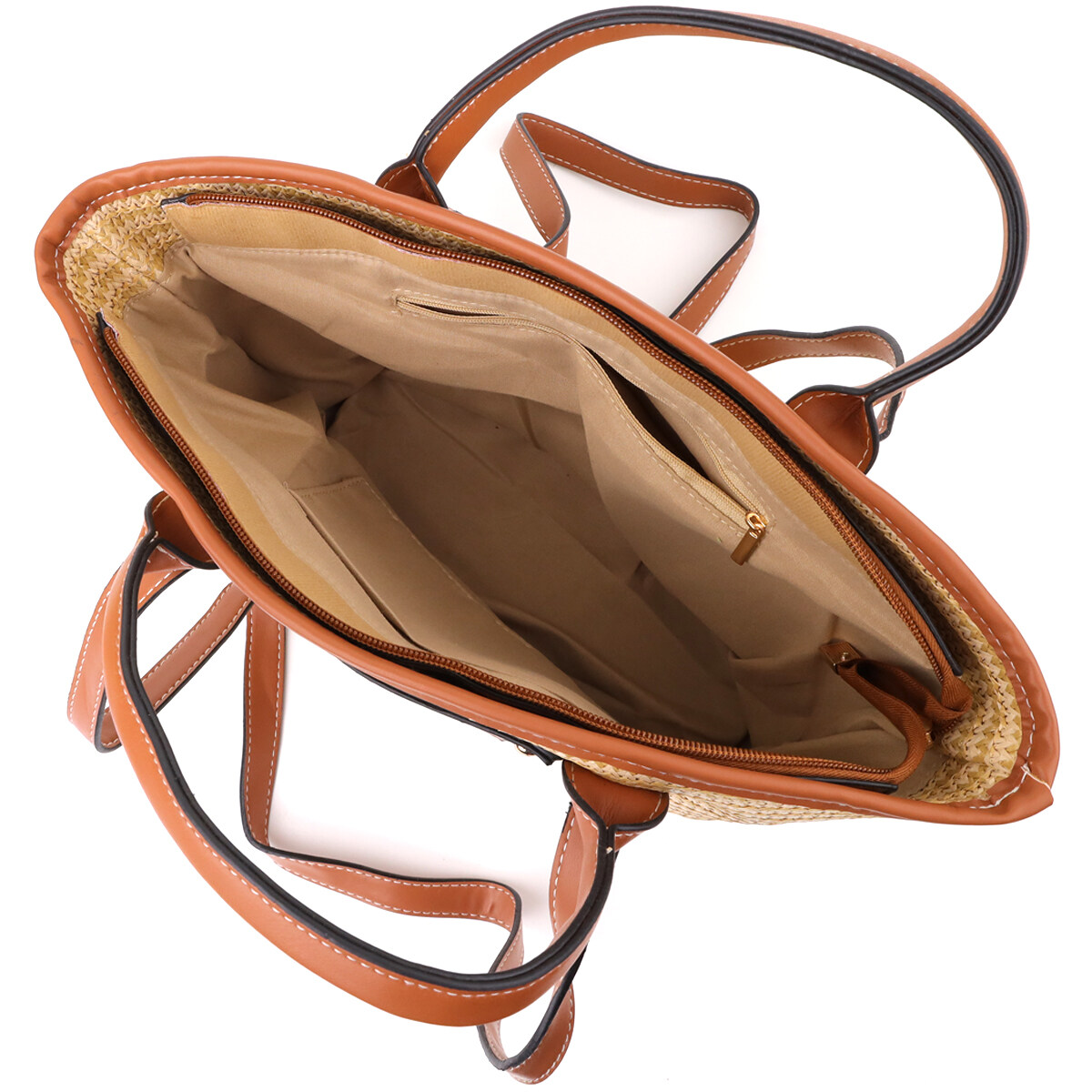 Стильна літня сумка для жінок з якісного текстилю відмінно підійде як на пляж, так і чудово виглядатиме в міській метушні. Аксесуар дуже легкий та зручний. Сумка закривається на блискавку. Усередині щільна підкладка та безліч кишень. Сумка стане ідеальним помічником у дорогу. Рекомендуємо вам цю модель для легкої сумки.