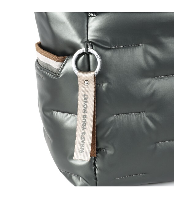 Містка, дута сумка на плече, звільняє руки і дає можливість скористатися необхідними речами в дорозі або кожен день. Сумка на плече з додатковим знімним ременем, актуальна модель для активних жінок. Оснащена основним відділенням, внутрішньою кишенею, знімною косметичкою і двома додатковими кишенями з передньої і задньої сторони сумки, також є бічні кишені для парасольки або пляшки. Виконана з щільного 100% polyester.