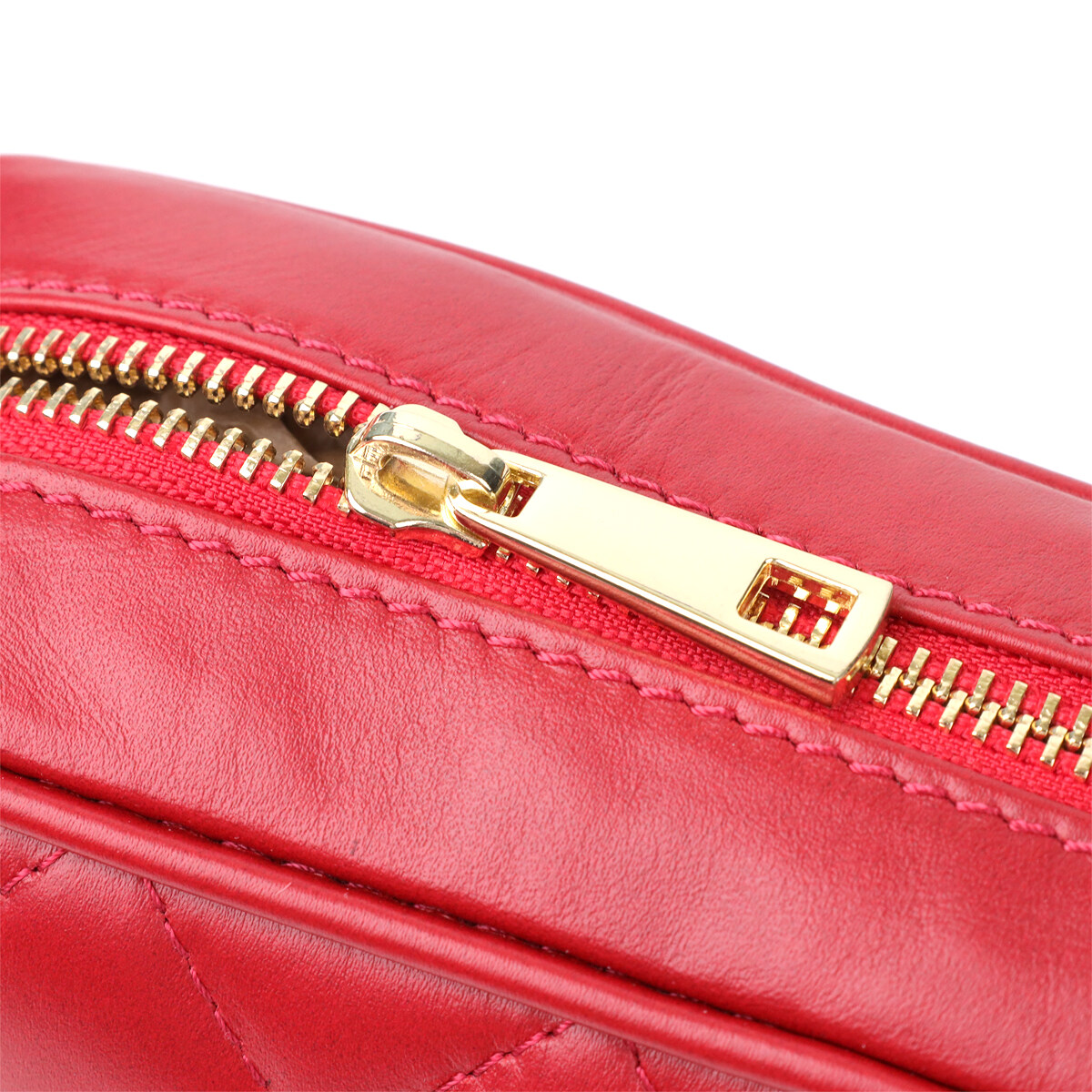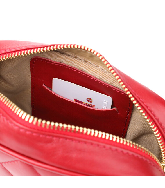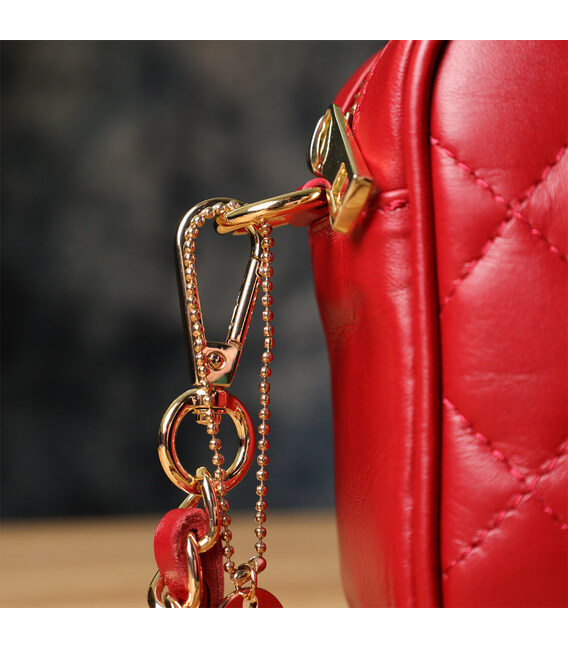 Компактна сумка з натуральної шкіри у насиченому червоному кольорі. Стигана ромбами поверхня підкреслює витончений дизайн і додає аксесуару елегантності. Одне основне відділення дозволяє зручно розмістити все необхідне, зберігаючи компактність та легкість. Ручка-ланцюжок довжиною 135 см робить сумку універсальною: її можна носити як на плечі, так і через плече. Така деталь надає аксесуару сучасного характеру і завершує образ стильної жінки.