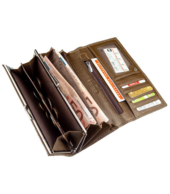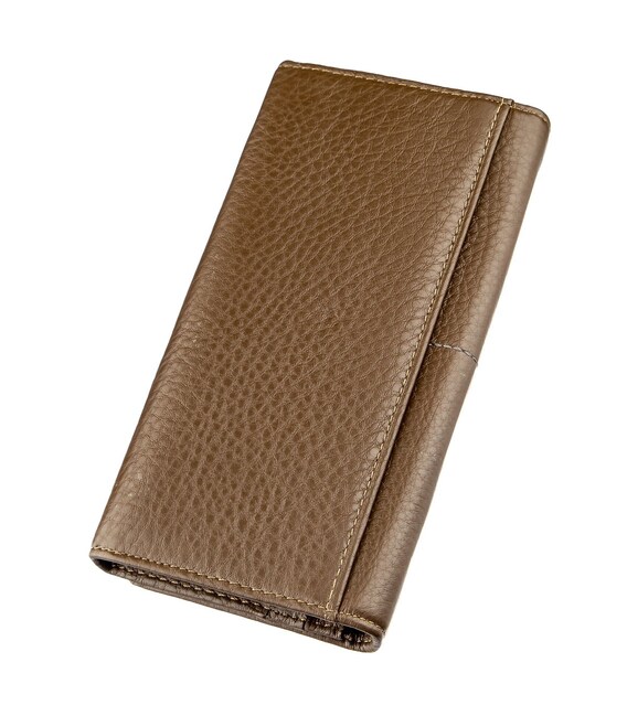 Стильний і в той же час лаконічний дизайн оцінить будь-яка дівчина. Гаманець виконаний в коричневому кольорі з зеленуватим відтінком. Модель горизонтального плану має оптимальний функціонал і правильно підібрані розміри. По краях аксесуар прошитий рівним рядком. Гаманець прекрасно підійде в якості подарунку для будь-якої дівчини. Виріб упаковано в картонну коробку червоного кольору.