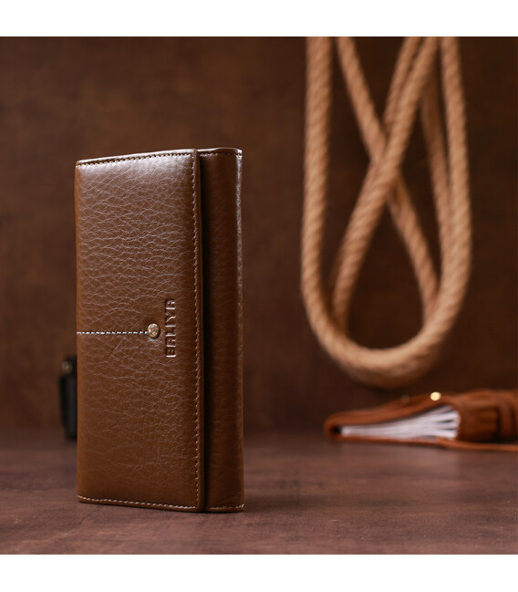 Гаманець горизонтальний зі стразами жіночий шкіряний BALIYA 18977 Коричневий
