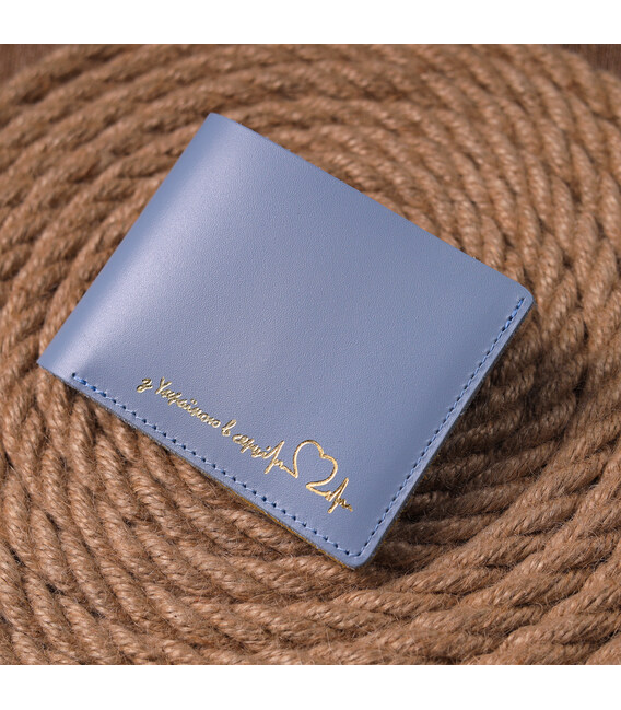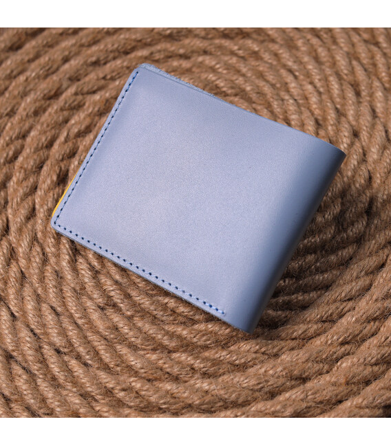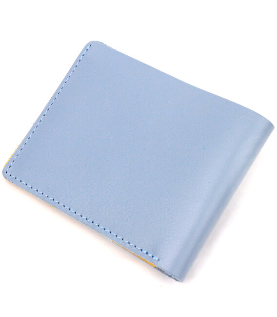 Стильний шкіряний гаманець, у комбінації двох кольорів блакитного зовні та жовтого всередині з патріотичним написом “З Україною в серці”. Виріб пошитий із якісної шкіри, з високими показниками зносостійкості. Портмоне має одне велике відділення для купюр усіх номіналів, а також достатню кількість відділень для карток, без застібки. Шкіряний гаманець стане чудовим подарунком на всі випадки життя.