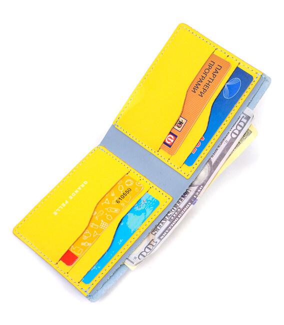 Детальніше Оригінальний шкіряний гаманець комбі двох кольорів Серце GRANDE PELLE 16739 Жовто-блакитний