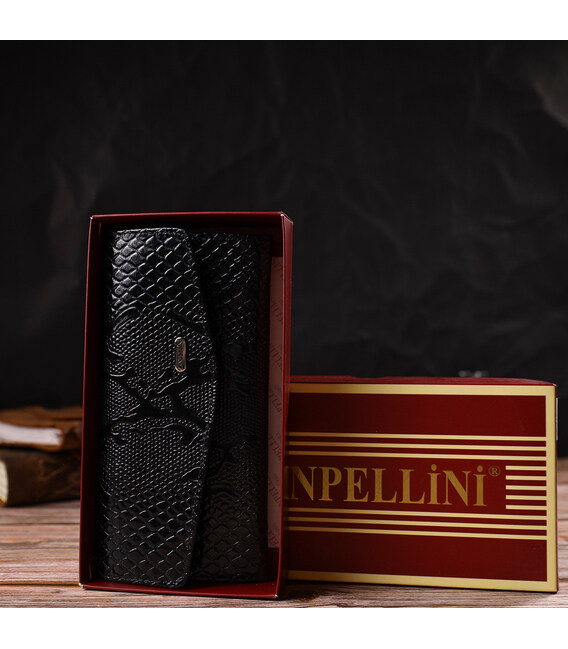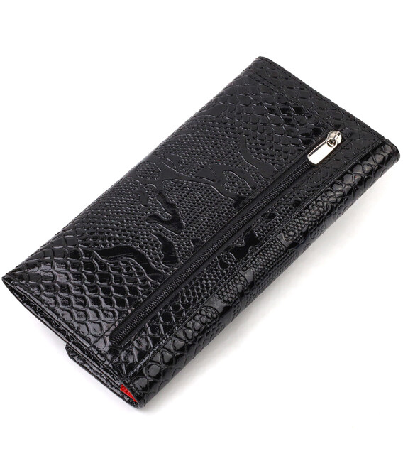 Фактурне жіноче лаковане портмоне з натуральної шкіри з тисненням під змію CANPELLINI 21700 Чорне
