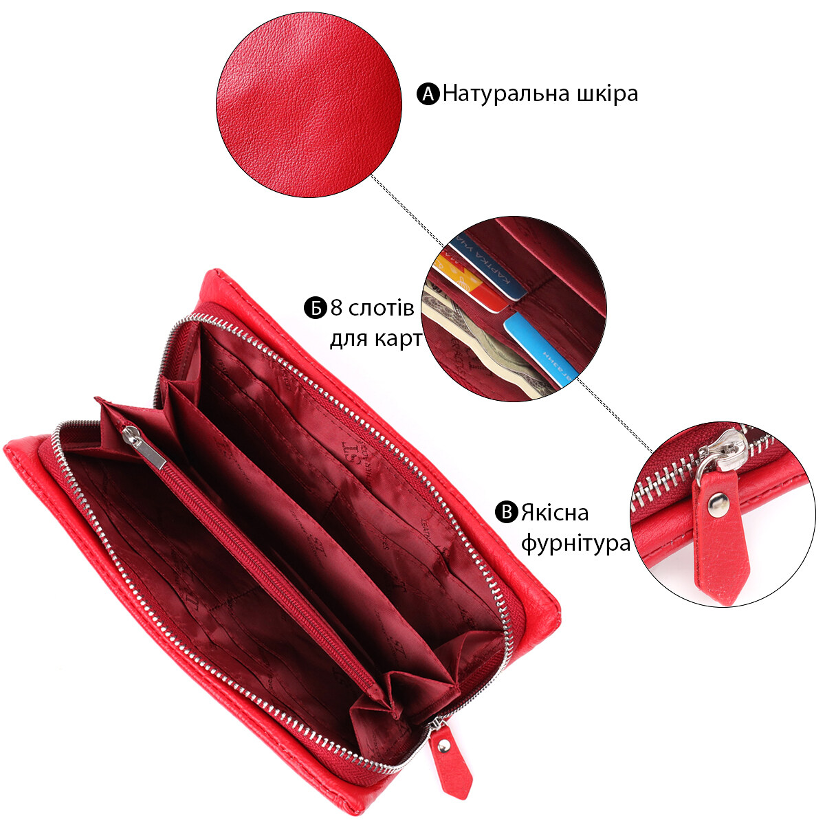 - 3 широкі відділення для купюр;