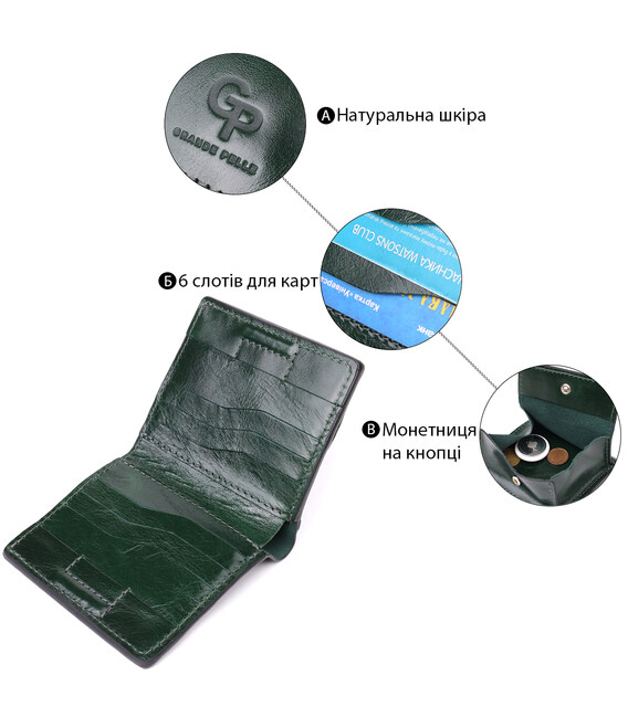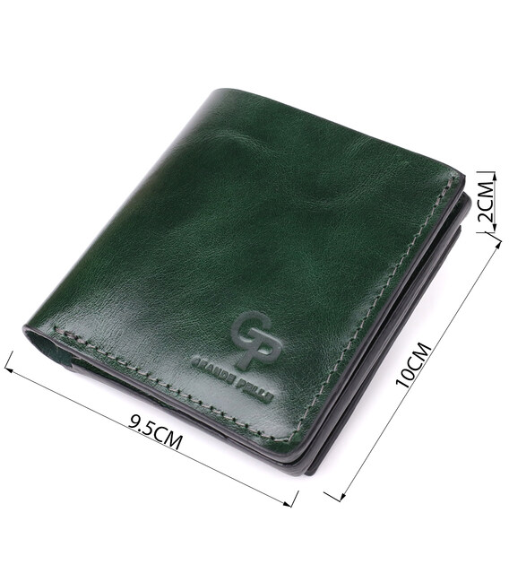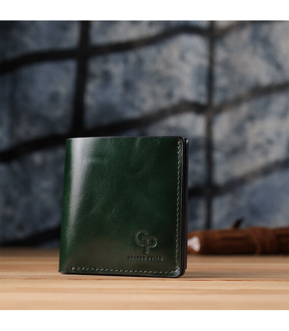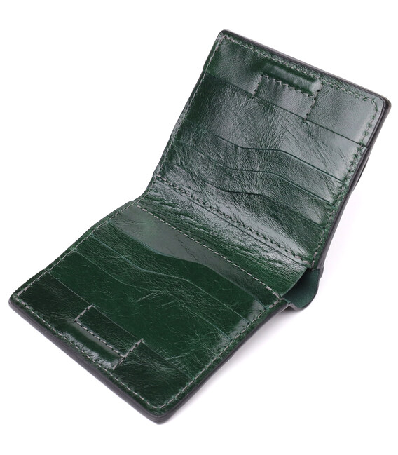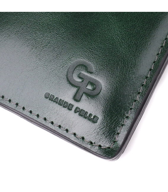 Компактний гаманець у дві складення з натуральної гладкої шкіри GRANDE PELLE 22946 Зелений