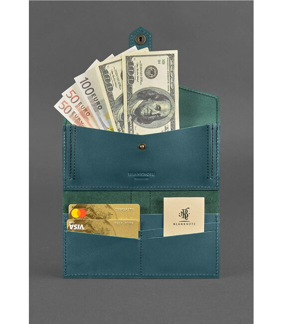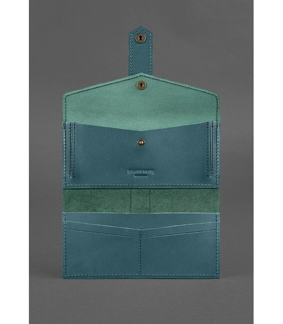 Стильне шкіряне портмоне не залишить байдужими представниць прекрасної статі. Насичений і глибокий бірюзовий колір аксесуара і лаконічний дизайн вигідно підкреслять вишуканий стиль власниці.