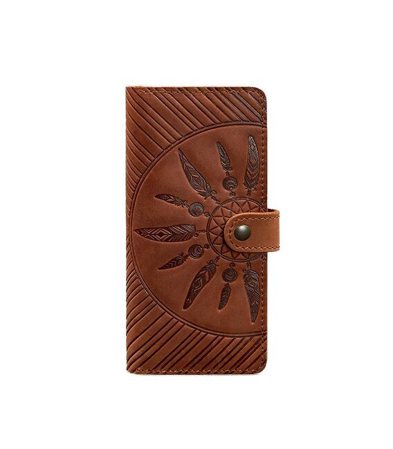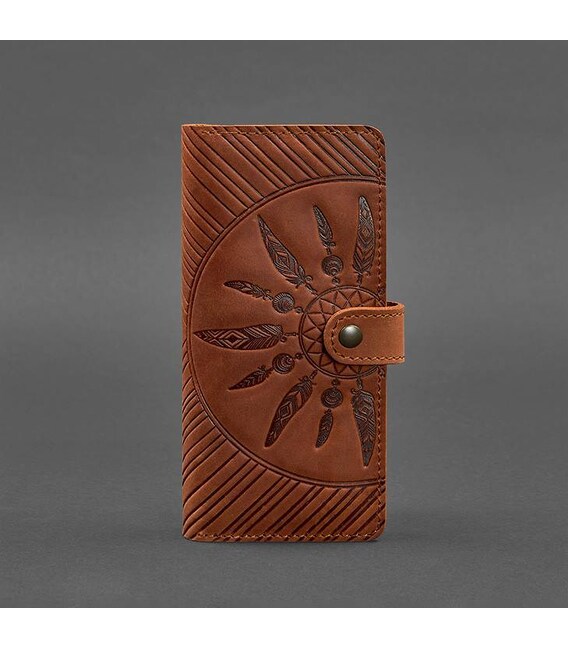 Прикрашений аксесуар тисненням у вигляді ловця снів. Ми впевнені, що цей індіанський талісман виконує не тільки декоративну функцію, але і захищає фінанси від швидкого витрачання і необдуманих витрат. Тиснення виконано чітко і акуратно. Вам сподобається тримати портмоне в руках!