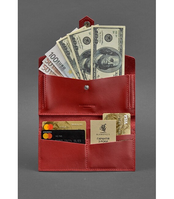 Шкіряне червоне портмоне сподобається дамам, які люблять стильні і лаконічні аксесуари. Таке портмоне можна використовувати як міні-клатч - воно відмінно виглядає в руці. Виготовлений аксесуар повністю вручну з натуральної шкіри Краст. Ця шкіра має гладку поверхню, стійку до подряпин і потертостей.