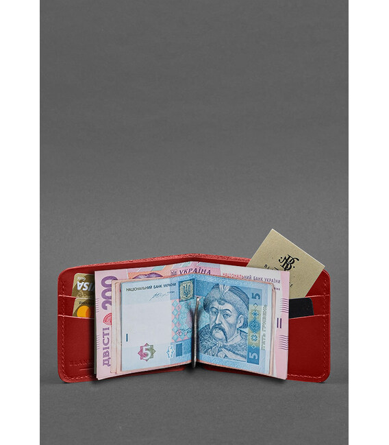 Шкіряне портмоне 4.4 (з затискачем) червоний краст