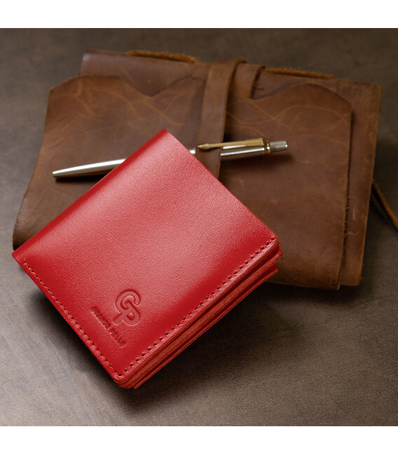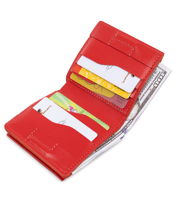 Невелике, але містке жіноче портмоне з оригінальною монетницею на кнопці. Матеріал виготовлення - зносостійка натуральна шкіра високого класу. Всередині є відділення для купюр і слоти для візитних і кредитних карток. Таке портмоне не займає багато місця, тому поміститься в сумочку будь-якого розміру.