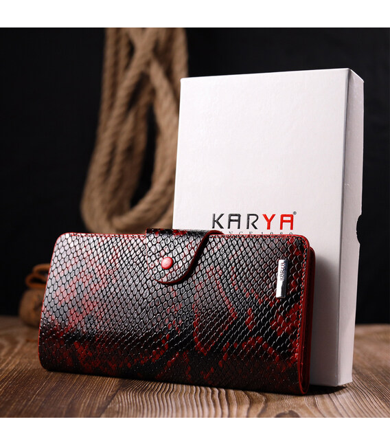 Детальніше Яскраве жіноче портмоне із натуральної фактурної шкіри під змію KARYA 21003 Червоний