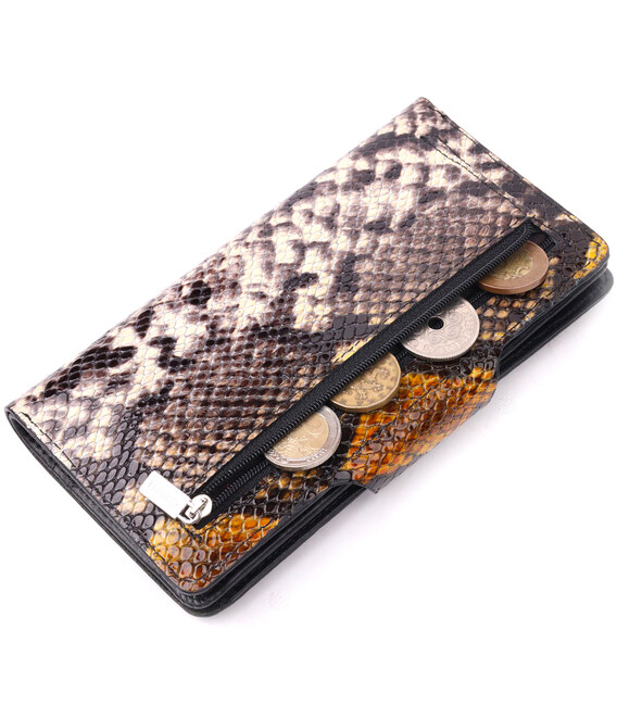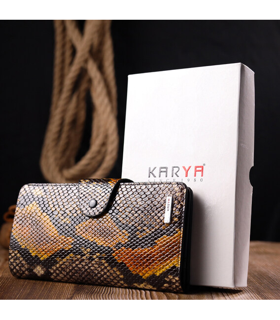 Незвичайне жіноче портмоне з натуральної фактурної шкіри під змію KARYA 21004 Різнокольоровий