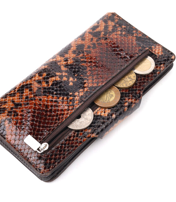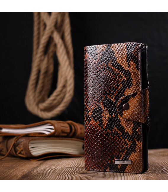Детальніше Надійне жіноче портмоне з натуральної фактурної шкіри під змію KARYA 21005 Коричневий
