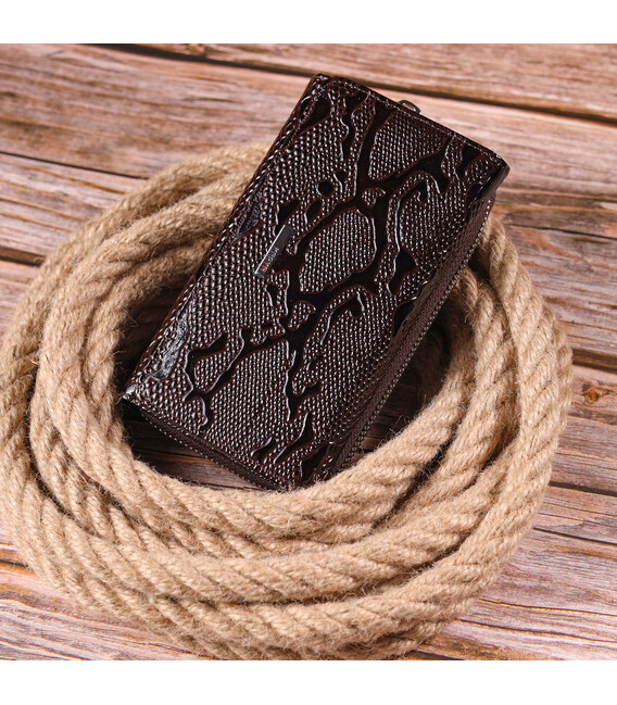Містке жіноче портмоне з лакованої фактурної шкіри KARYA 21429 Коричневий