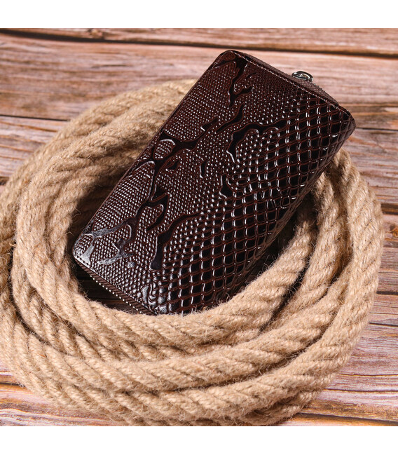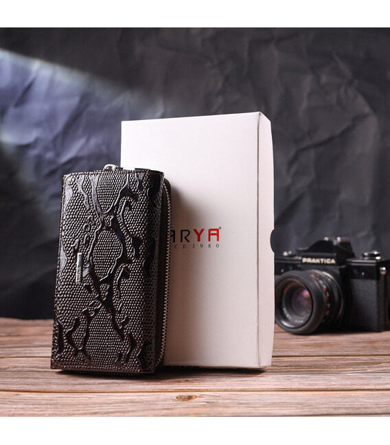 Детальніше Містке жіноче портмоне з лакованої фактурної шкіри KARYA 21429 Коричневий