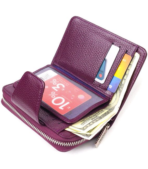 Практичний вертикальний портмоне для жінок з монетницею на блискавці з натуральної шкіри флотар CANPELLINI 21601 Фіолетовий