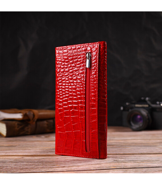 Детальніше Привабливе жіноче портмоне з натуральної шкіри з тисненням під змію CANPELLINI 21699 Червоний