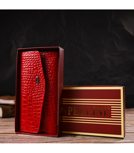 Привабливе жіноче портмоне з натуральної шкіри з тисненням під змію CANPELLINI 21699 Червоний