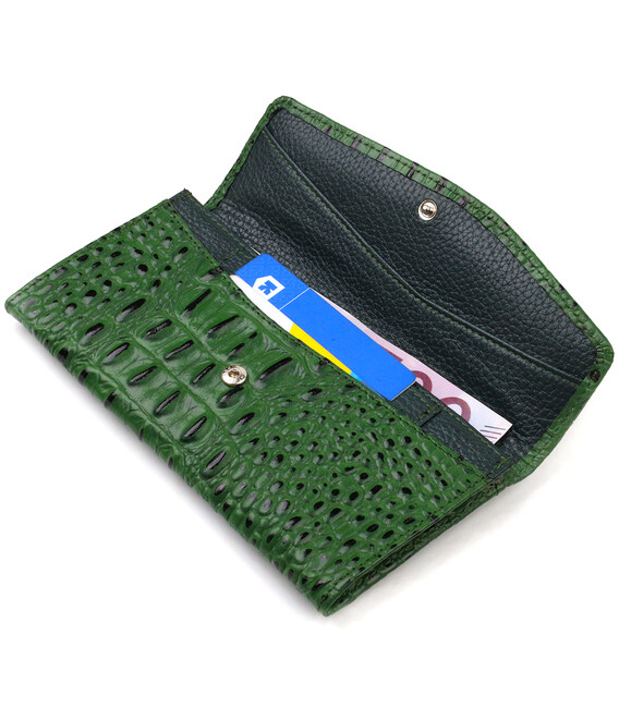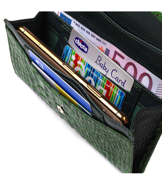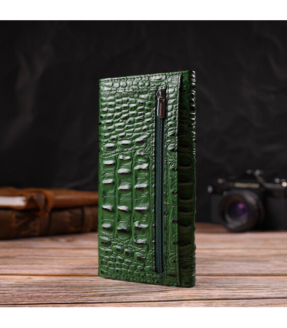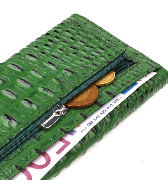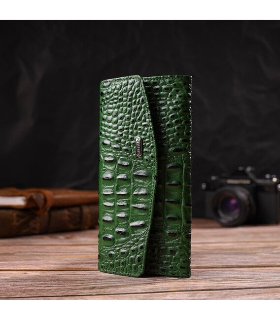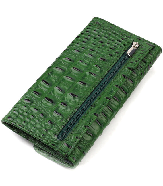 Портмоне для жінок з натуральної шкіри з тисненням під крокодила CANPELLINI 21701 Зелене
