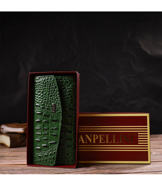 Детальніше Портмоне для жінок з натуральної шкіри з тисненням під крокодила CANPELLINI 21701 Зелене